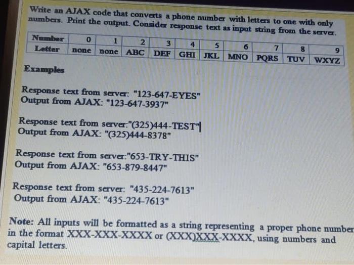 Solved Write An Ajax Code That Converts A Phone Number With Chegg Com
